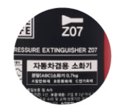 차량용 소화기임을 정식으로 인증하는 KFI 인증 마크가 있습니다.